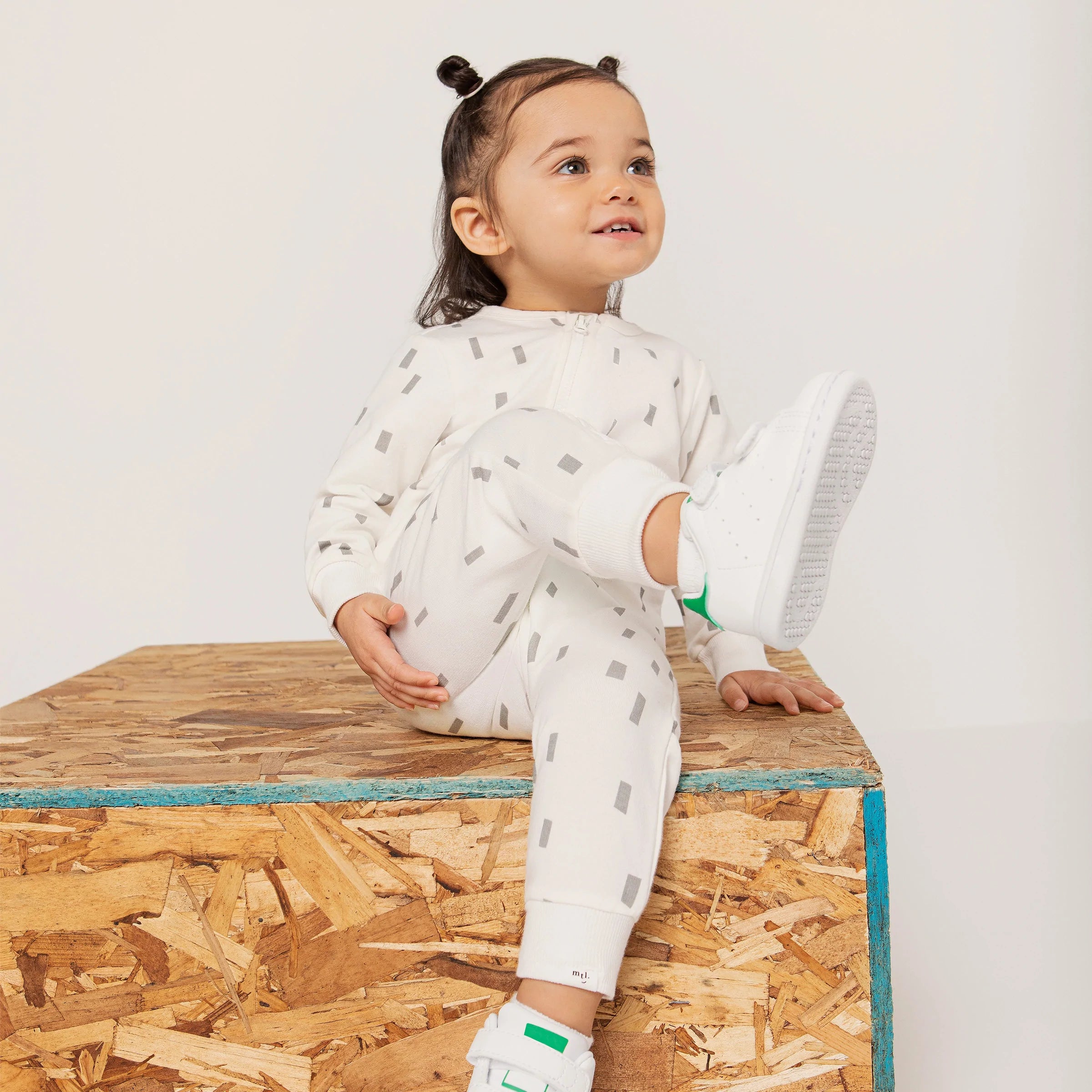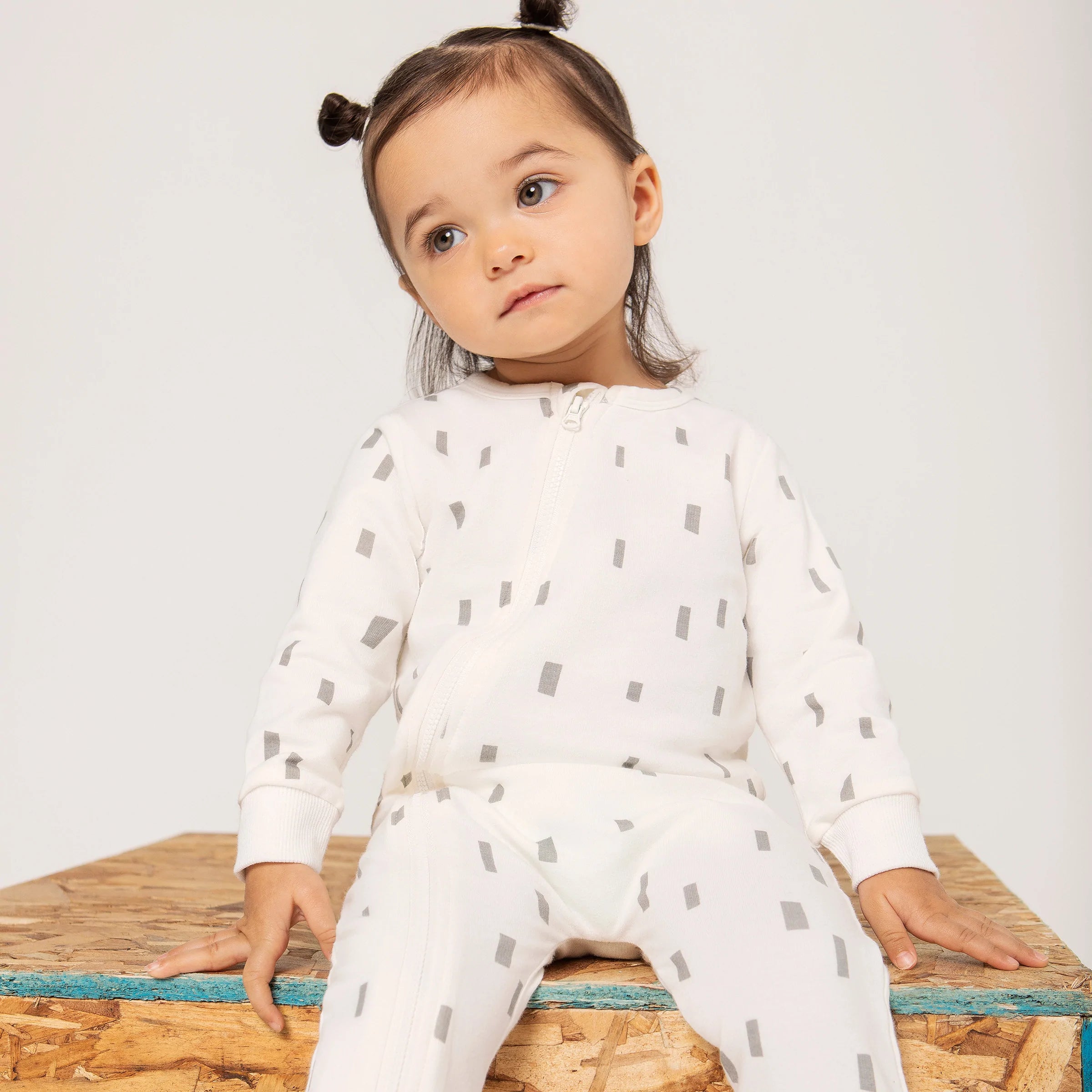 Playsuit - Off White/Grey Play Block Print
