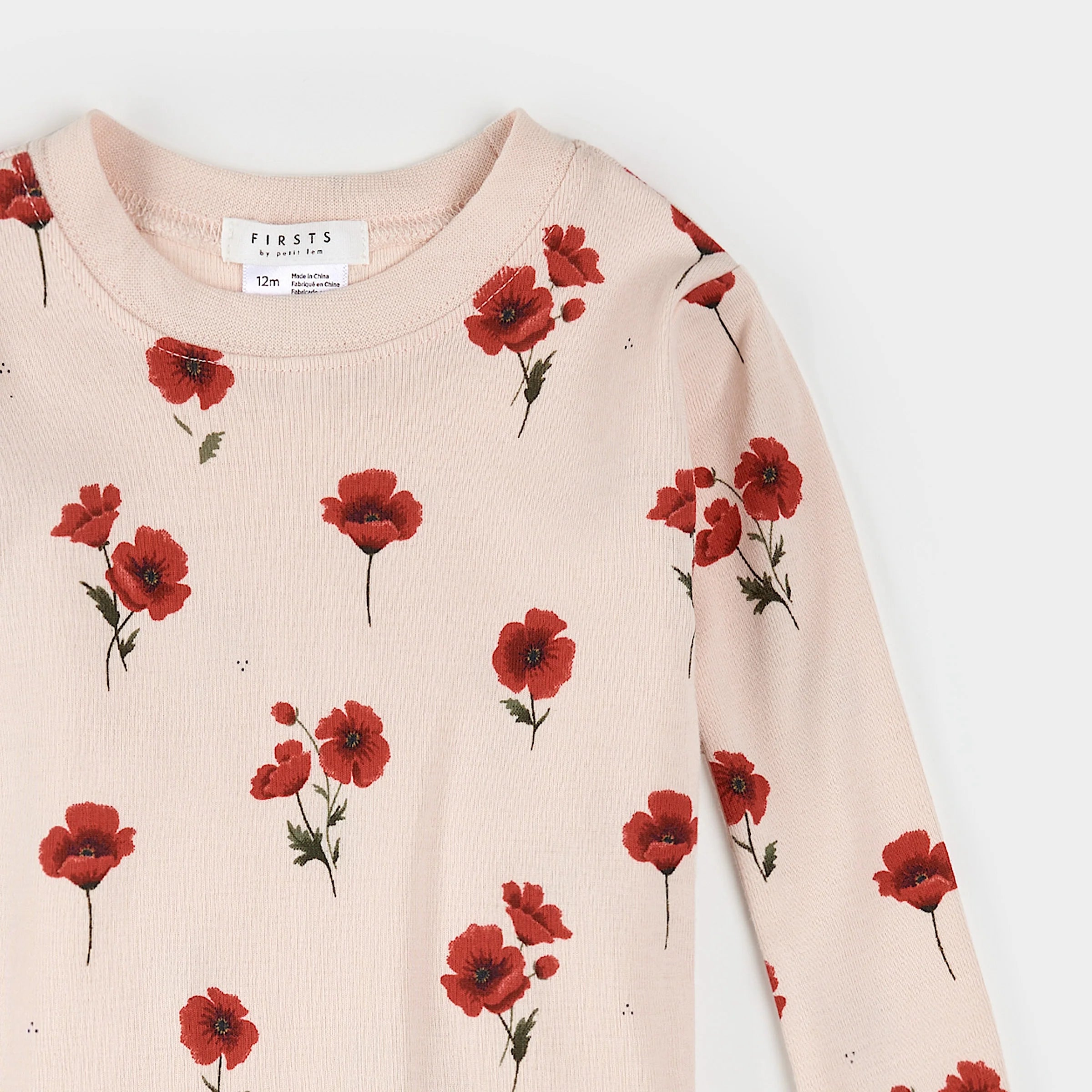 Poppy Print on Light Pink Infant PJ set
