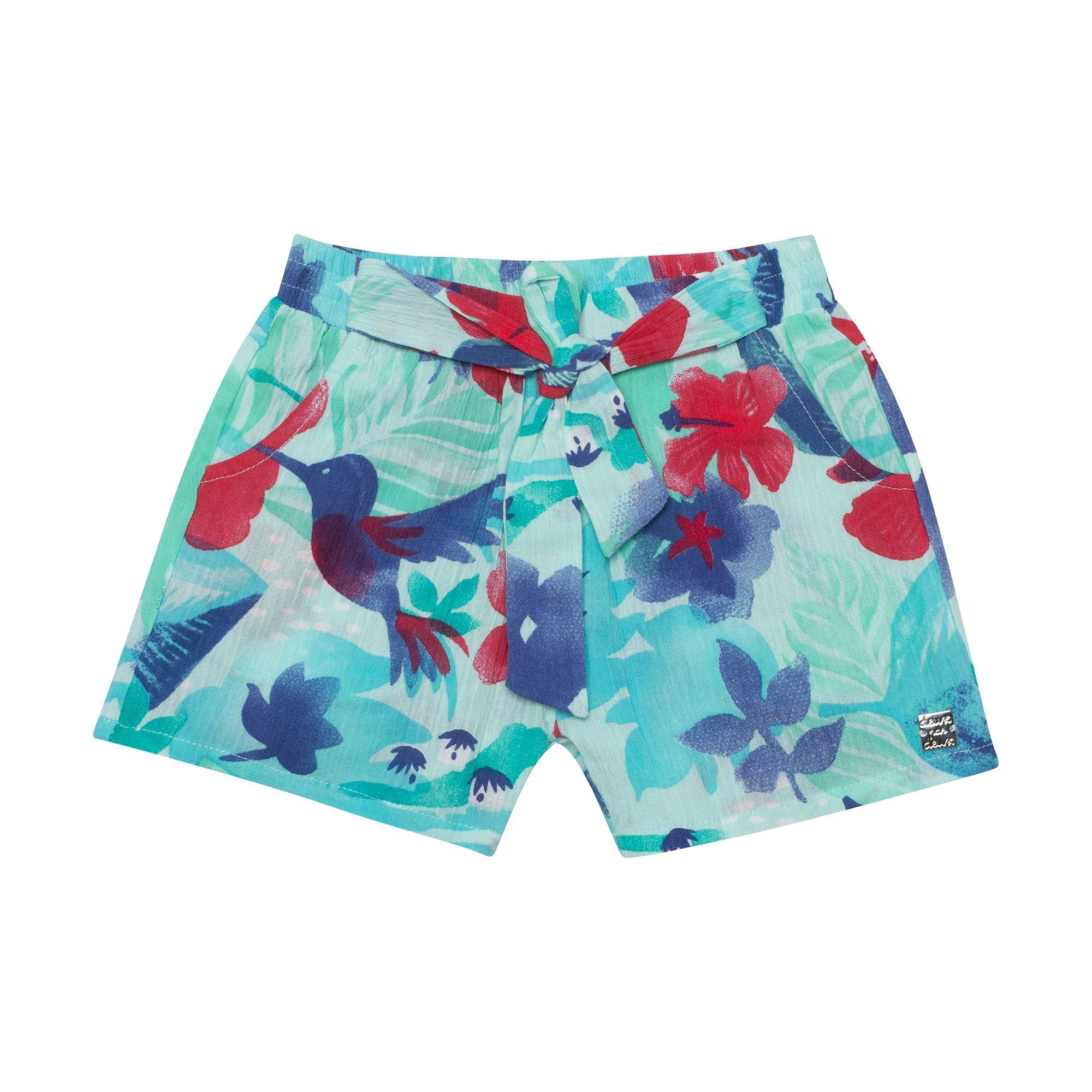 Printed Crinkle Poplin Shorts- Tahiti Print