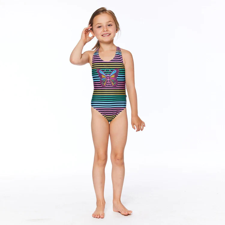 Swimsuit One Piece - Stripe Butterfly