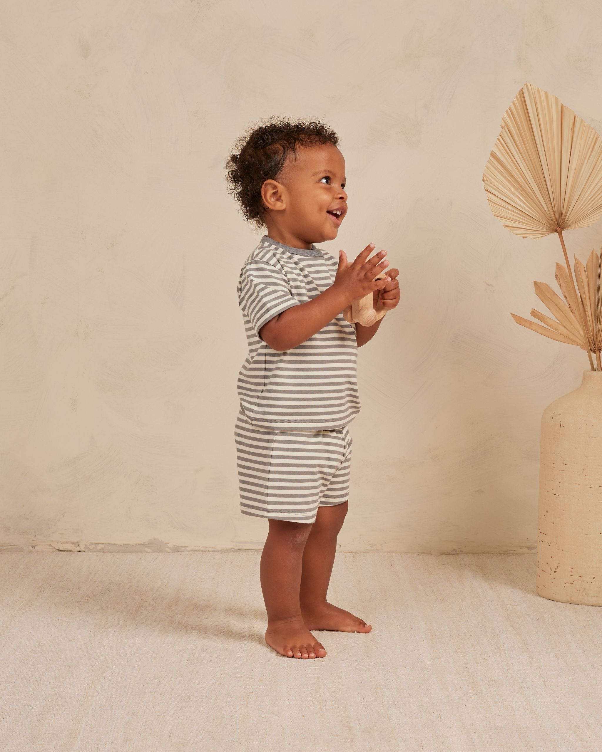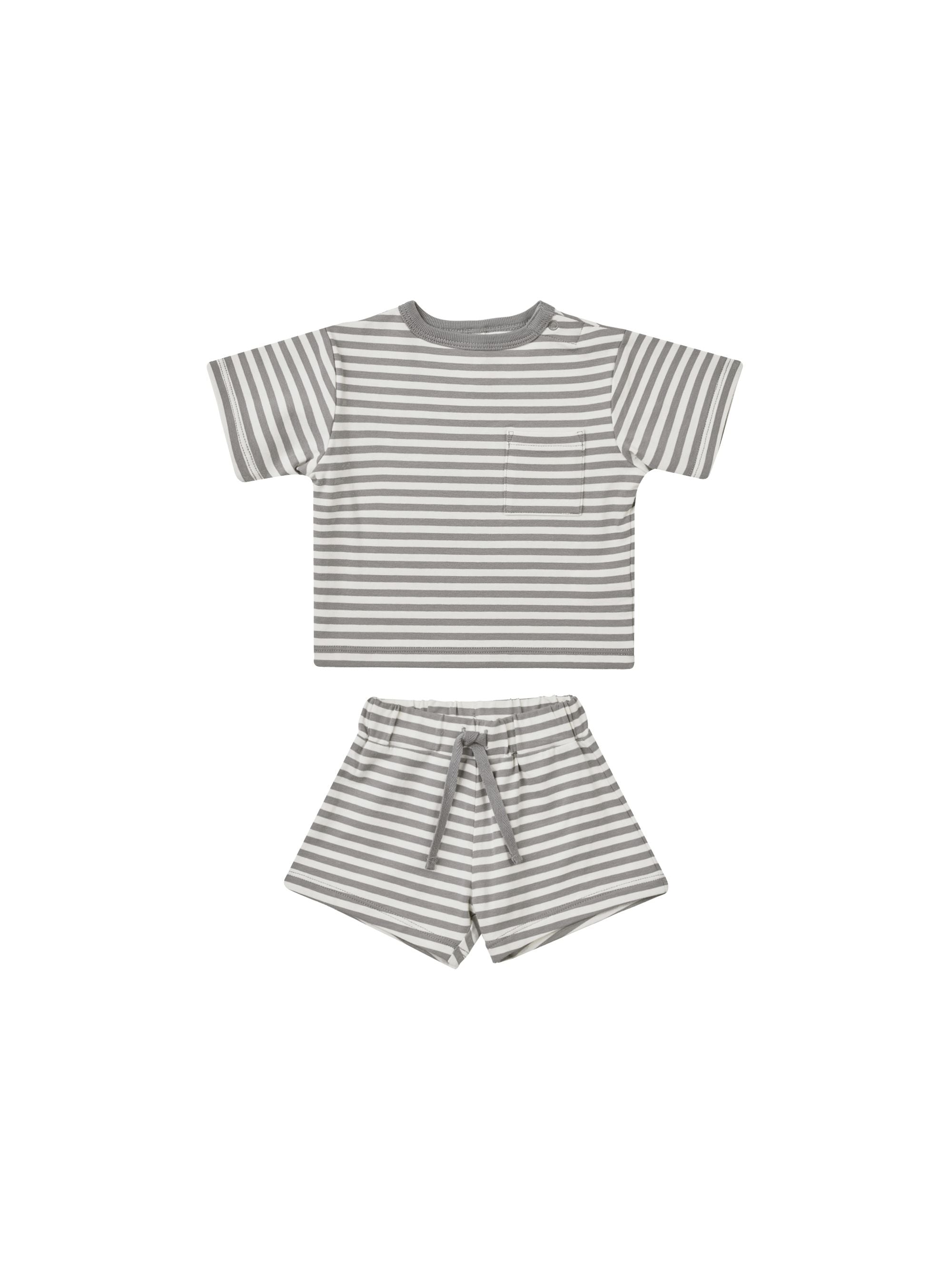 Boxy Tee with Pocket + Short- Lagoon Stripe