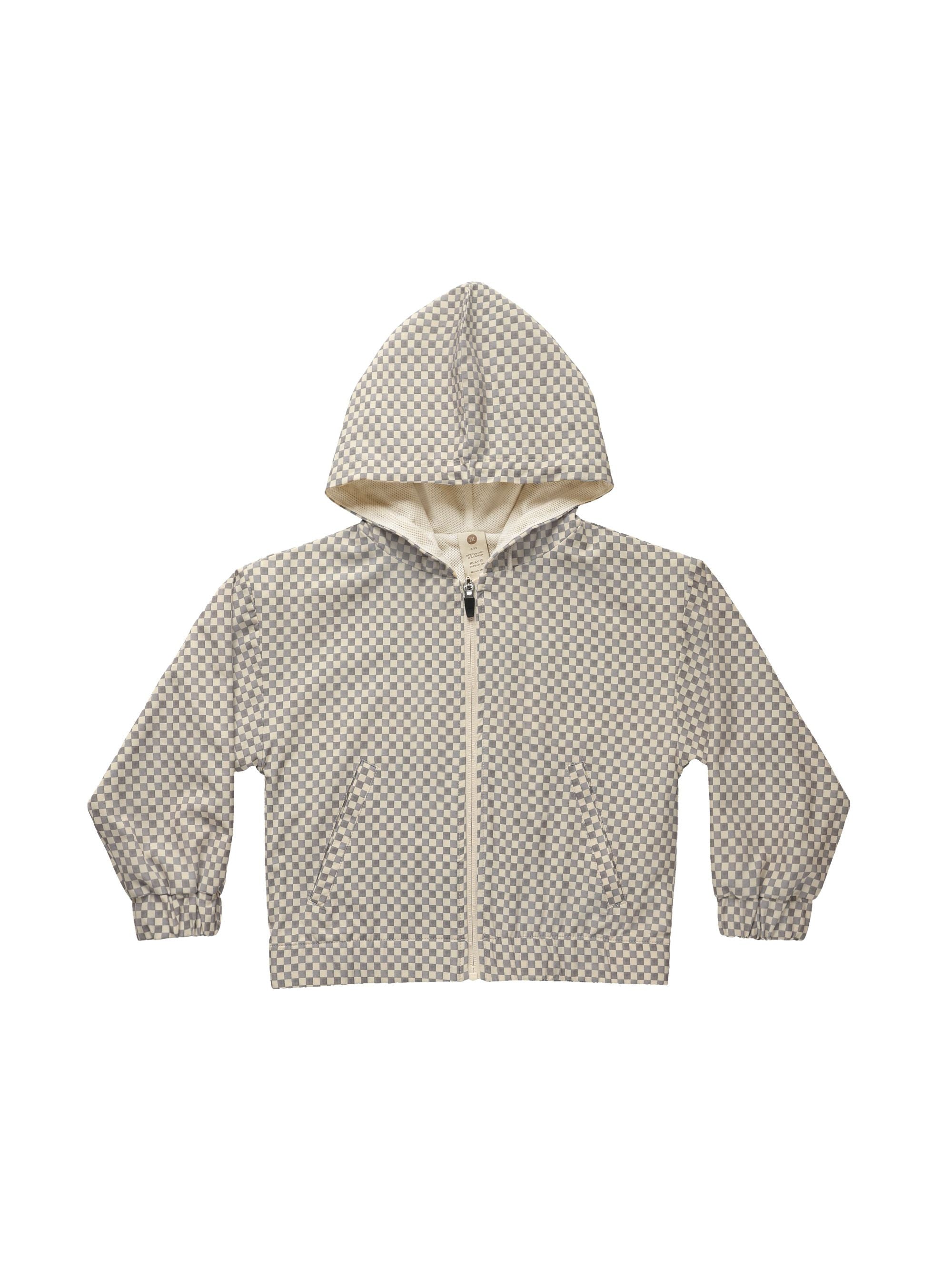 Hooded Windbreaker- Gray Micro Check