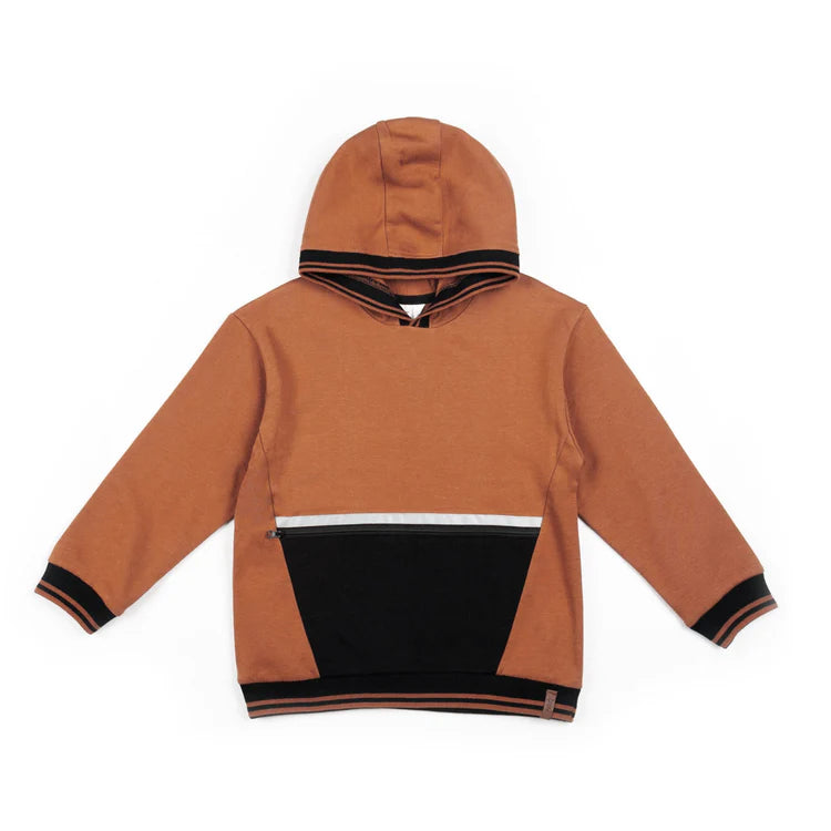 Hooded Sweater Zipper Pocket - Brown/Black