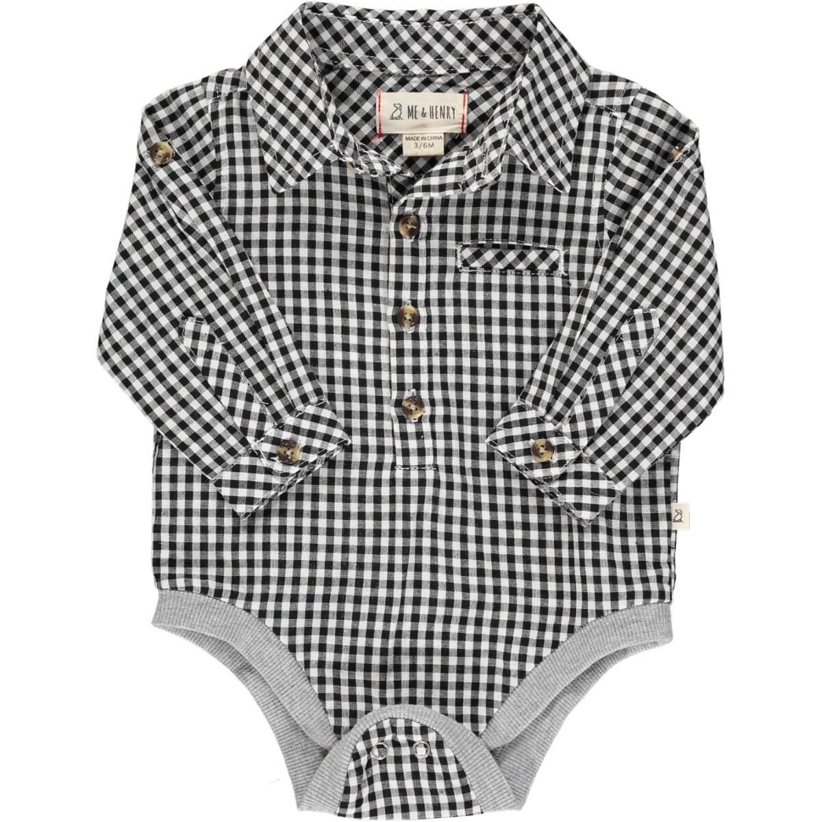 Jasper Woven Onesie- Black and White Plaid