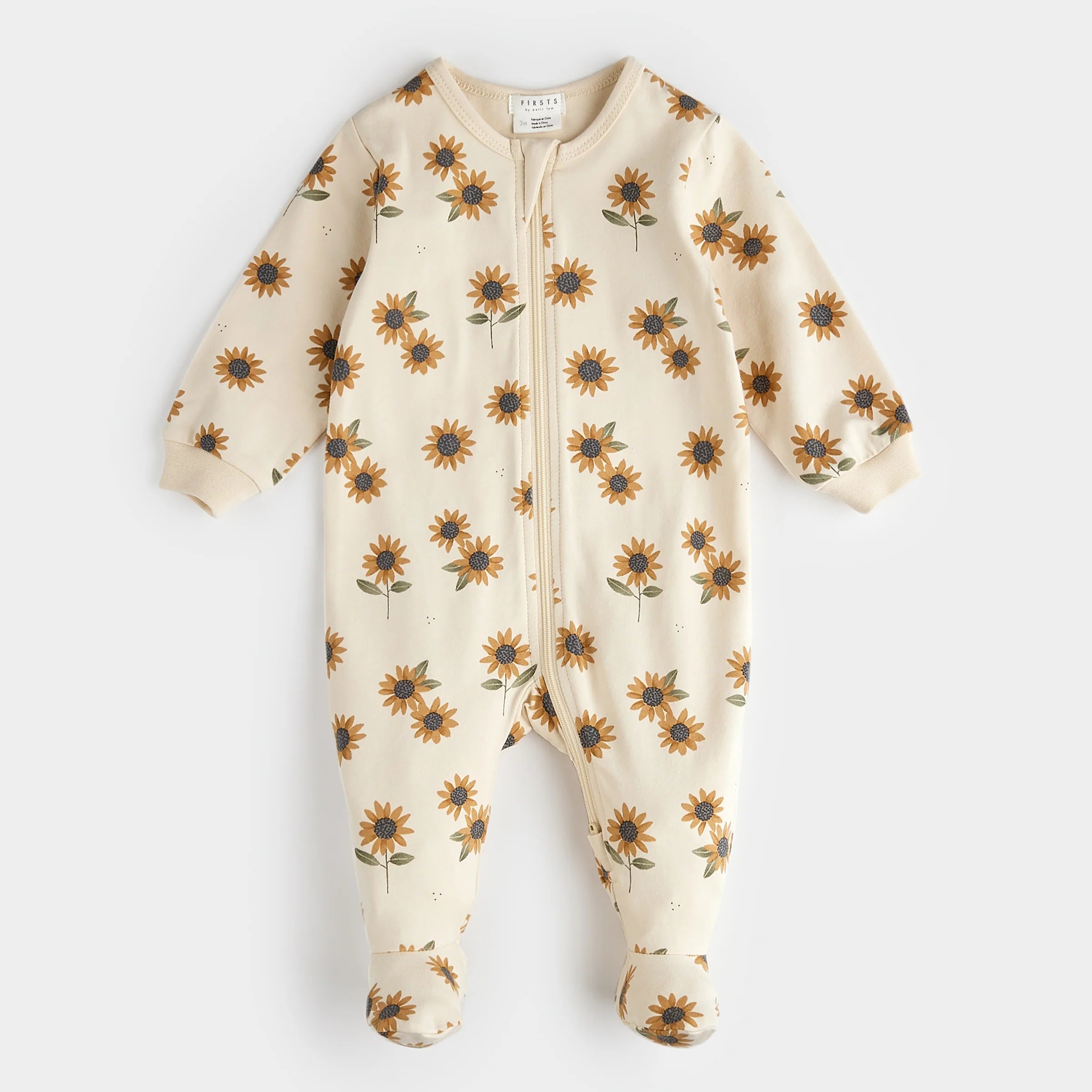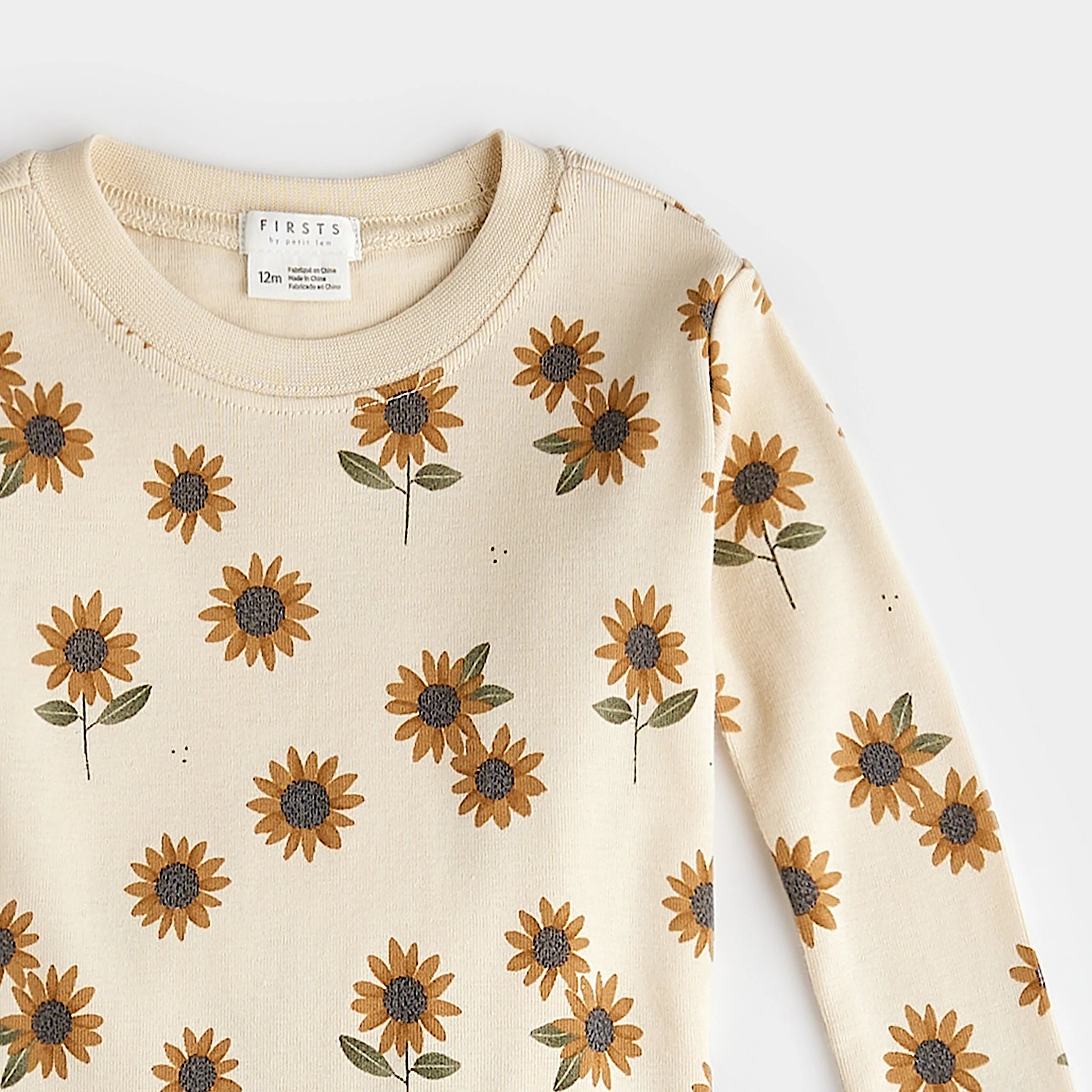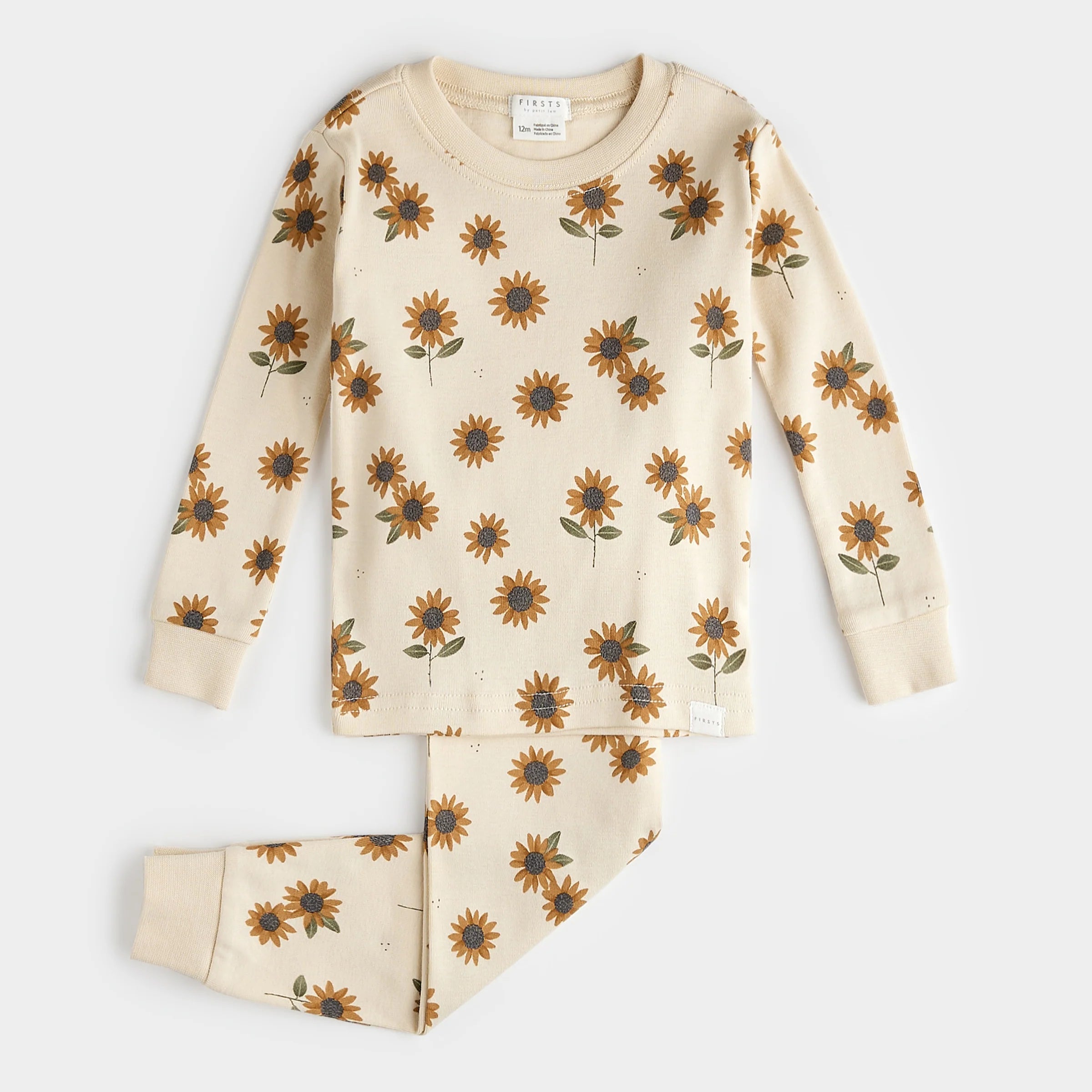 Sunflower Print on Antique White Infant PJ Set