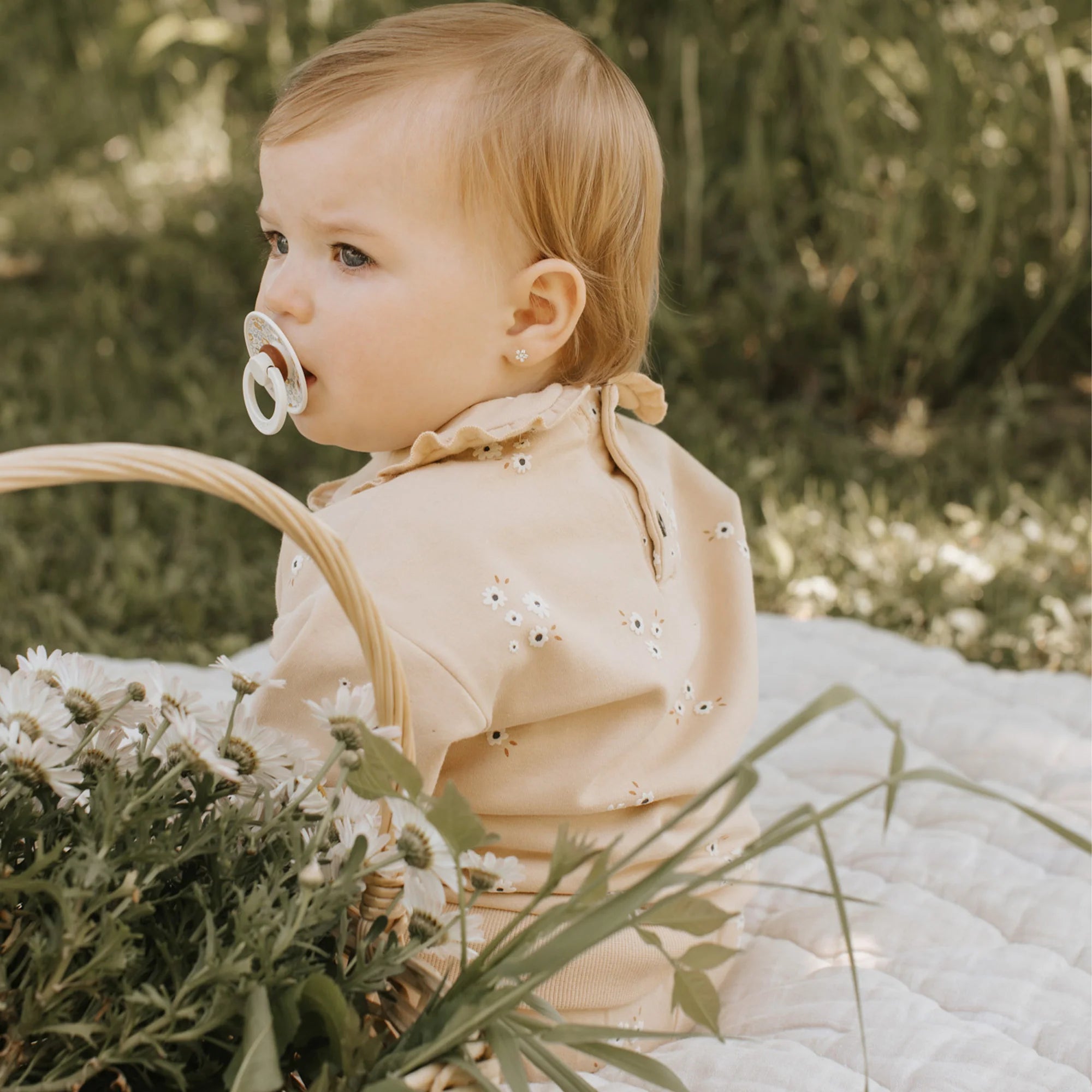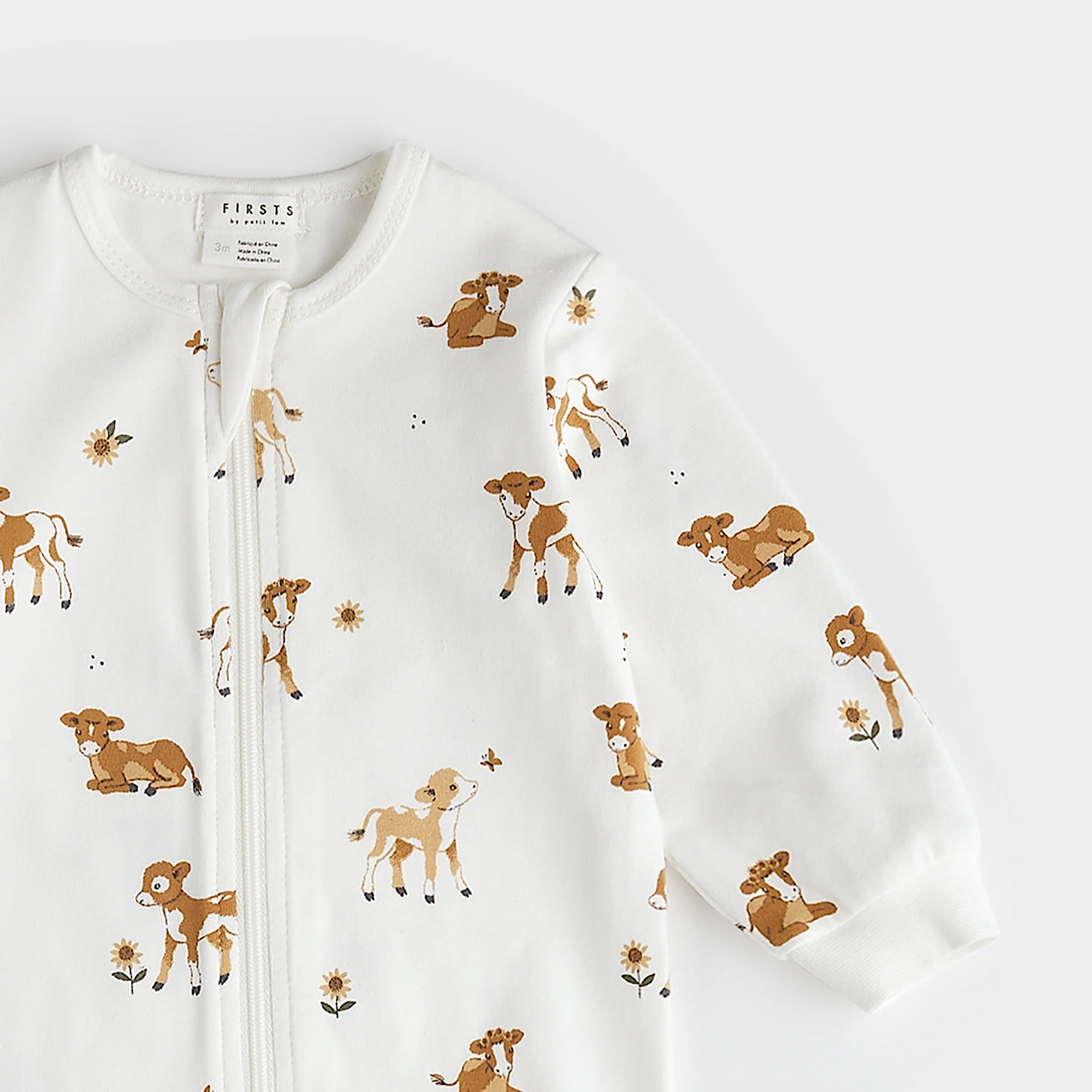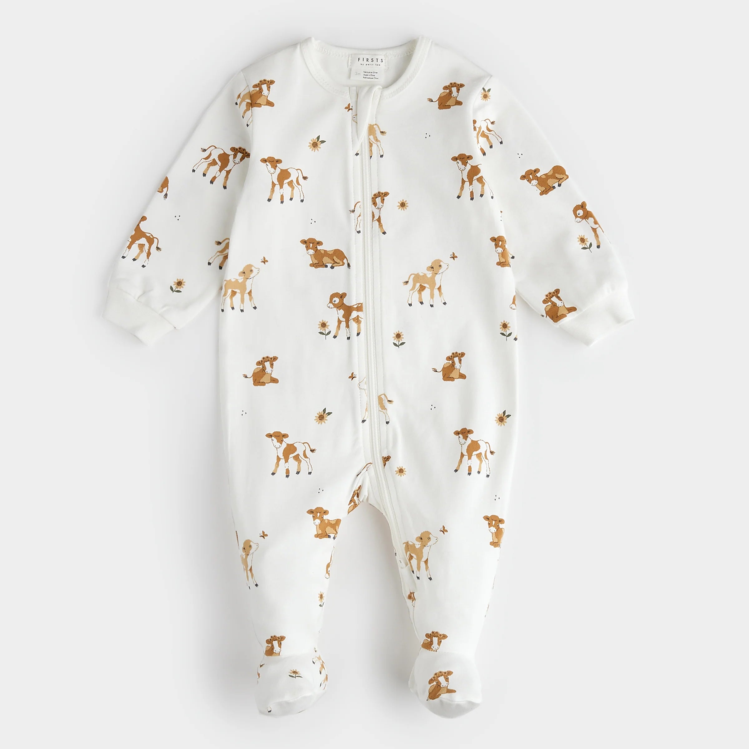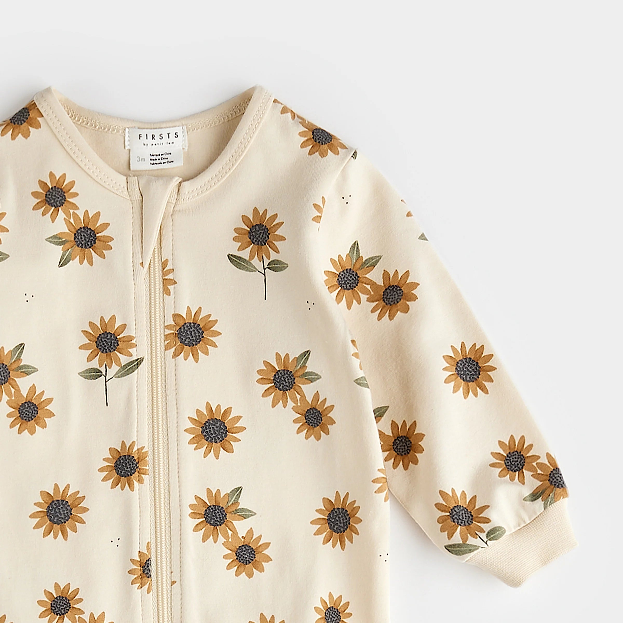 Sunflower Print on Antique White Infant PJ Set