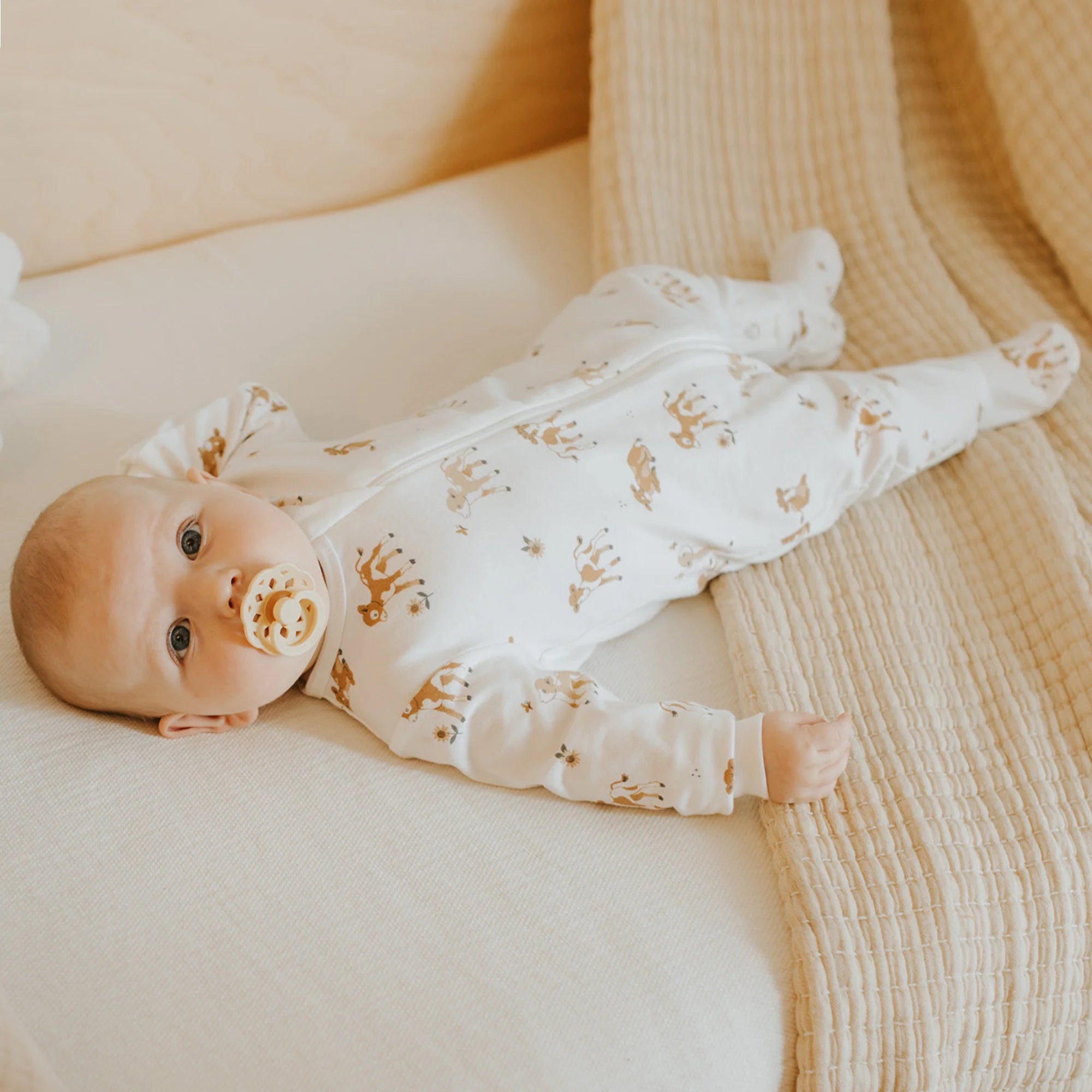 Pumpkin Pick-Up Print on Off White Sleeper