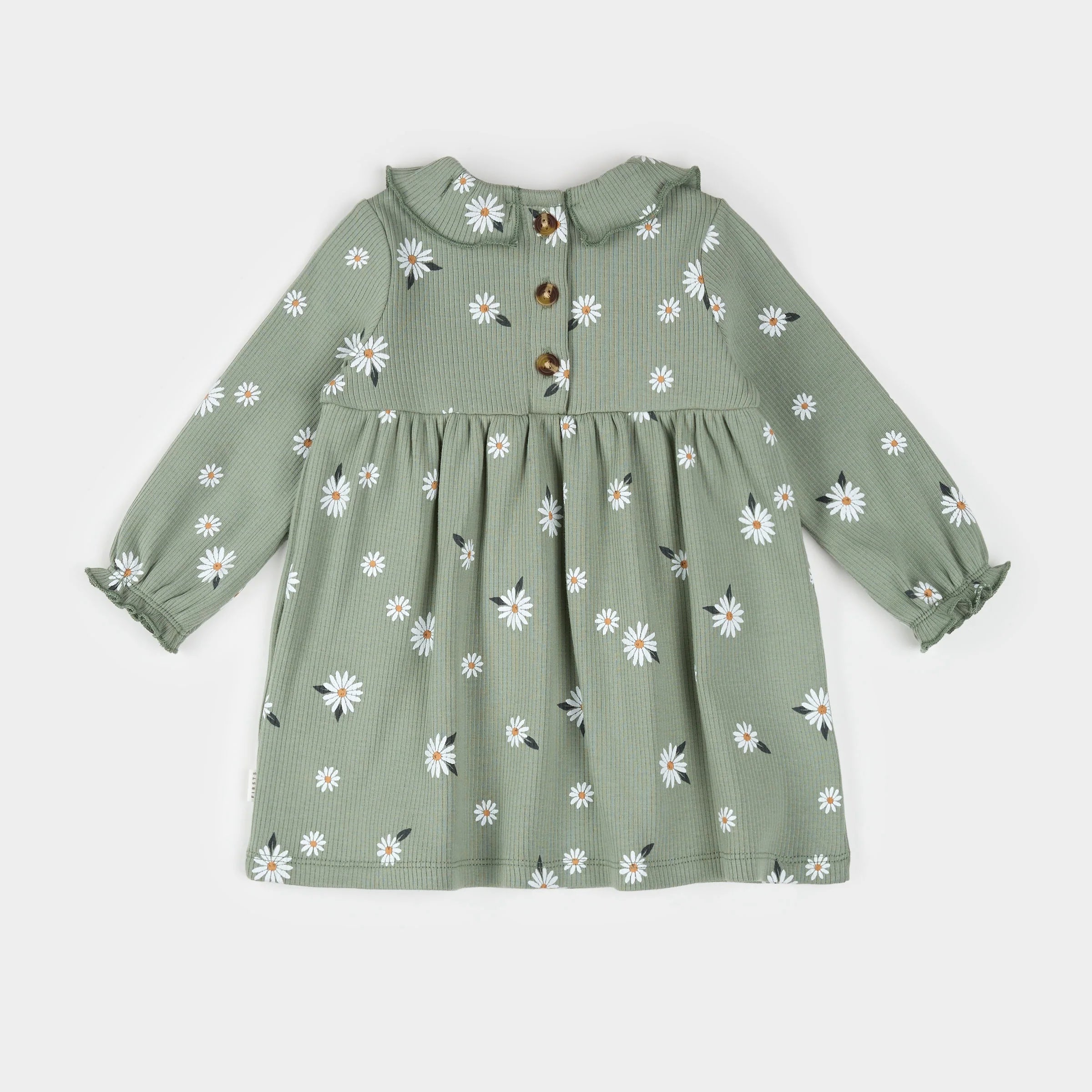 Daisy Print on Sage Green Ribbed Dress Set