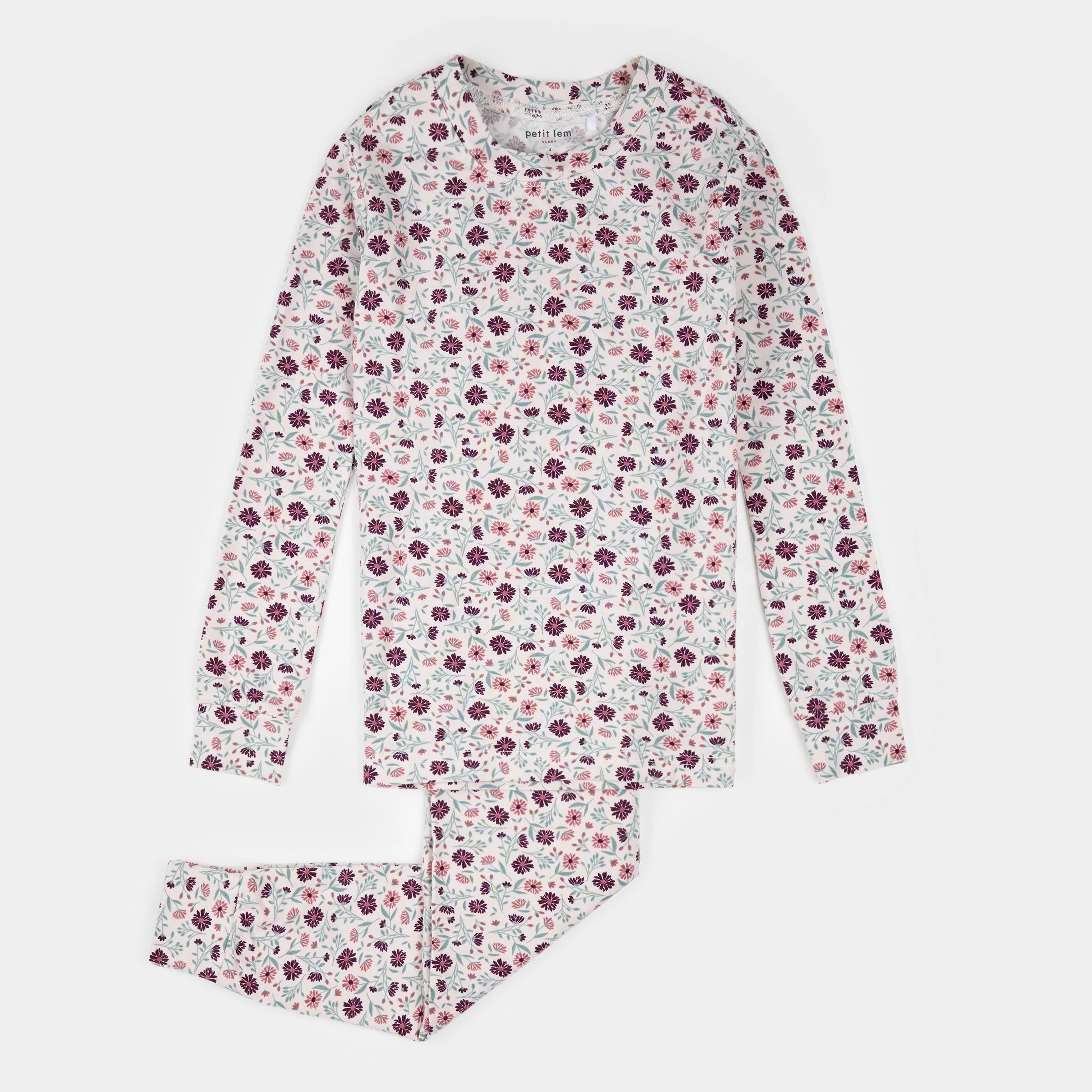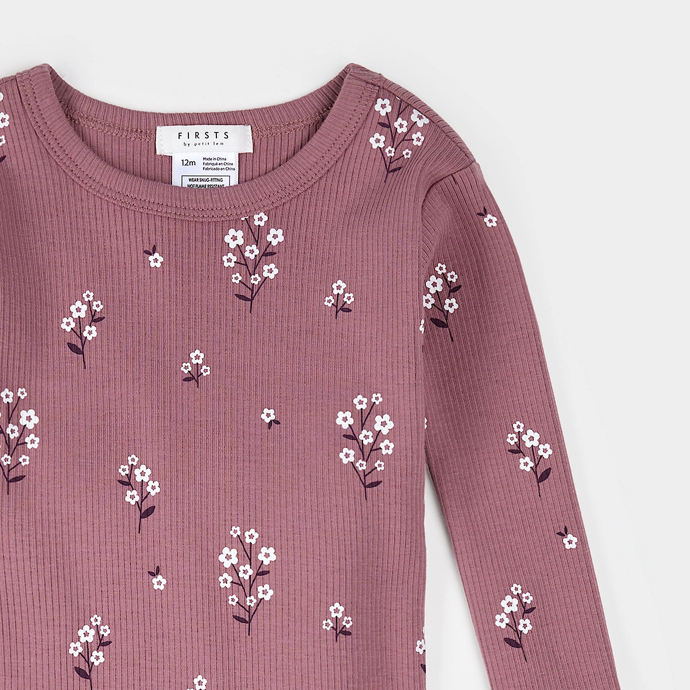 White Flowers Print on Mauve Infant PJ Set