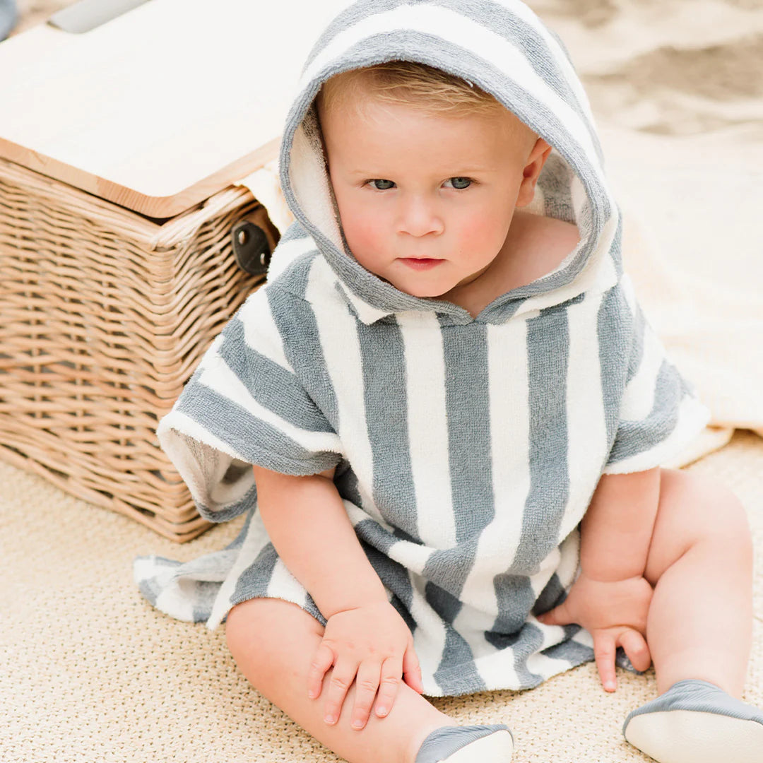 This terry knit beach poncho is made from a soft, organically grown cotton to keep them warm while they grab some lunch before diving back into the sea. With arm holes and a hood, the poncho has a comfortable fit that has the flexibility they need to keep playing while they dry off.