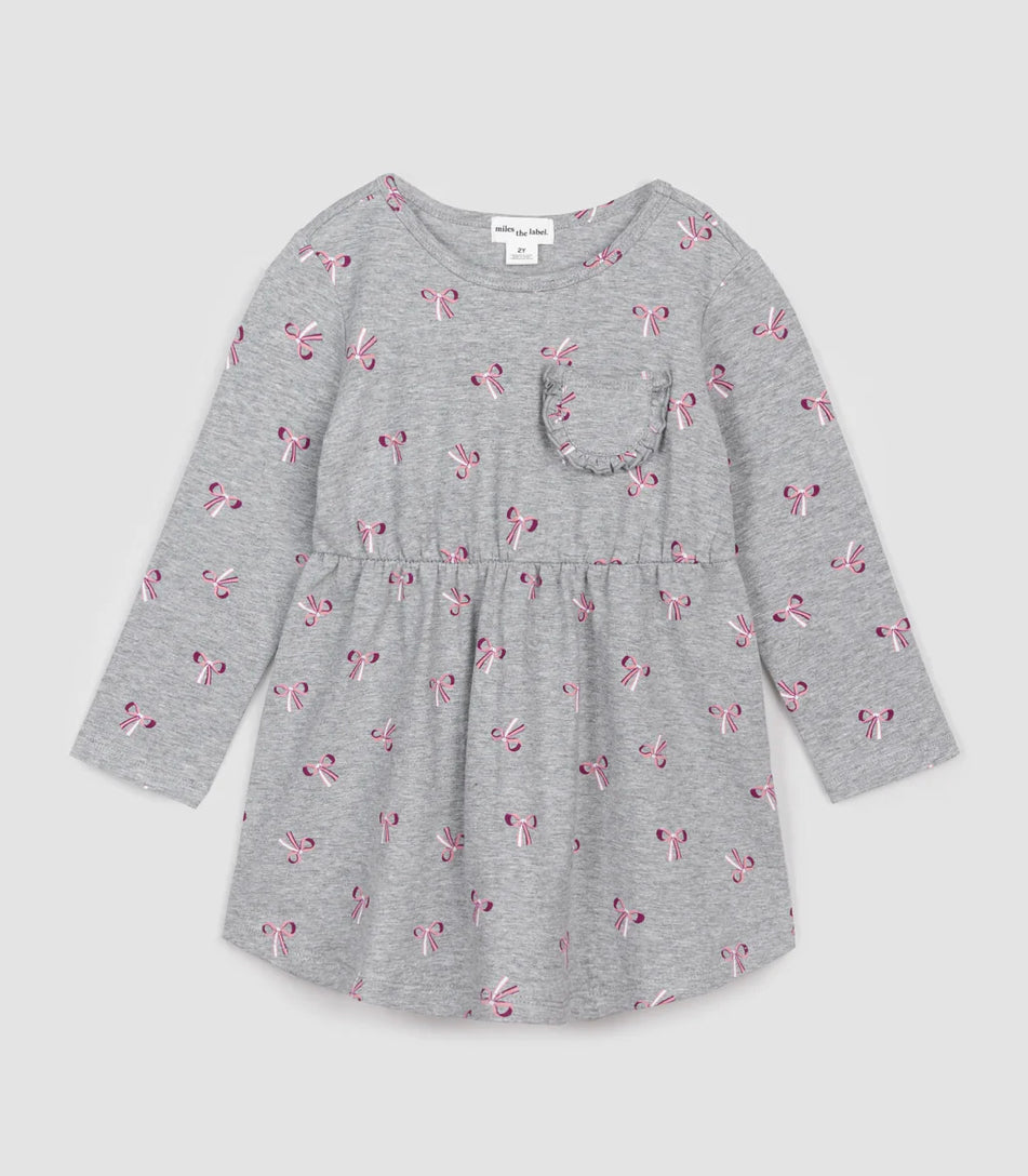 Pink Bow Dress- Heather Grey